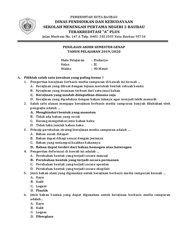 Kisi Kisi Soal Dan Kunci Jawaban Pas Prakarya Smp Kelas 9 Semester Ganjil Didno76 Com