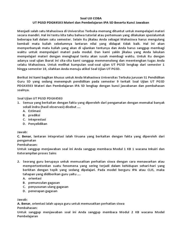 Soal Ujian Ut Universitas Terbuka Pgsd Beserta Kunci Jawaban Lengkap Untuk Semua Semester Universitas Kunci Sekolah
