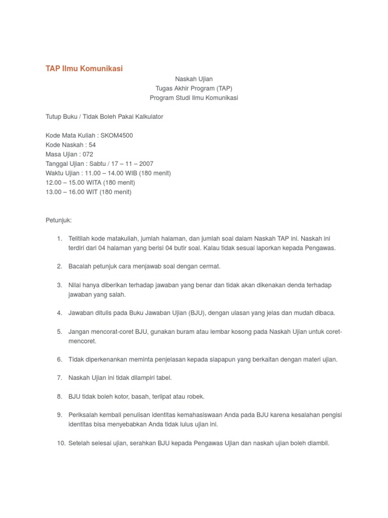 Soal Ujian Ut Ilmu Komunikasi Semester 1 Lengkap Dengan Kunci Jawaban Komunikasi