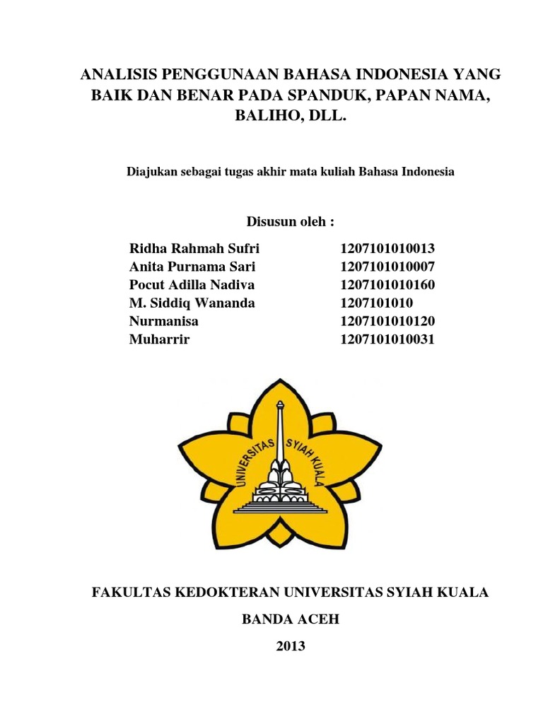Analisis Penggunaan Bahasa Indonesia Yang Baik Dan Benar Pada Spanduk Papan Nama Baliho Dll