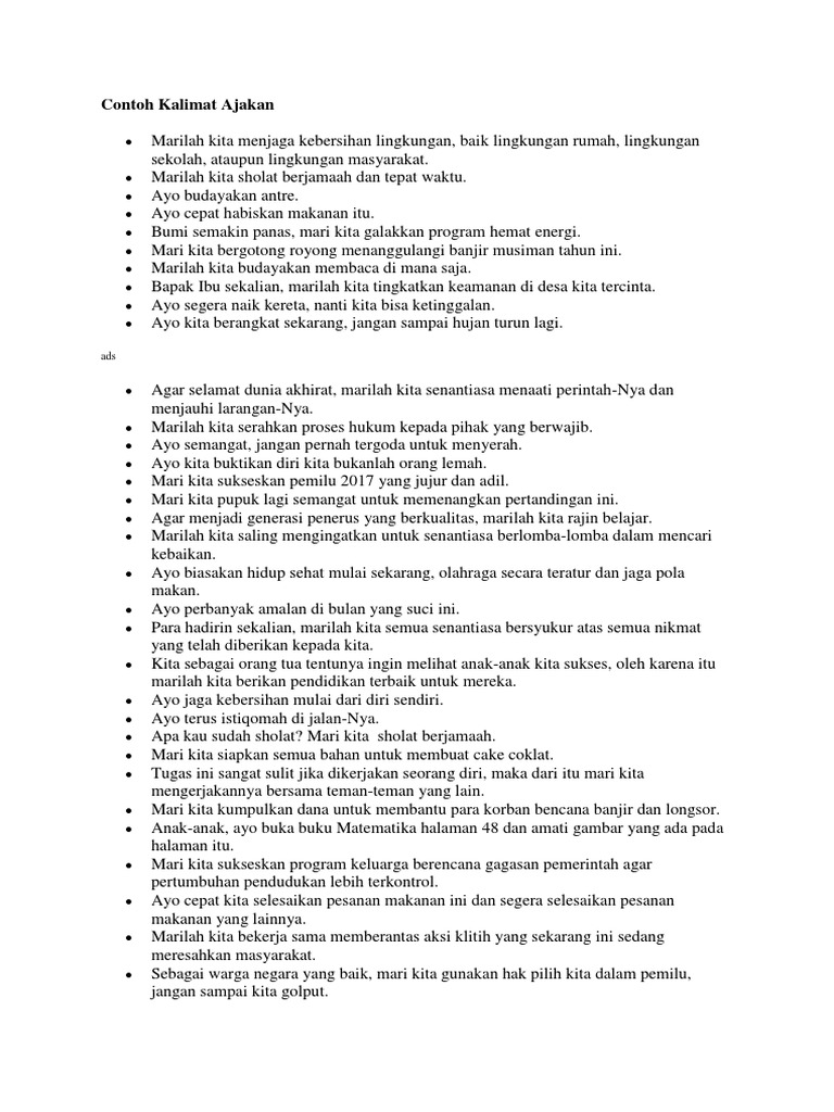 100 Contoh Kalimat Ajakan Yang Baik Dan Benar Lengkap