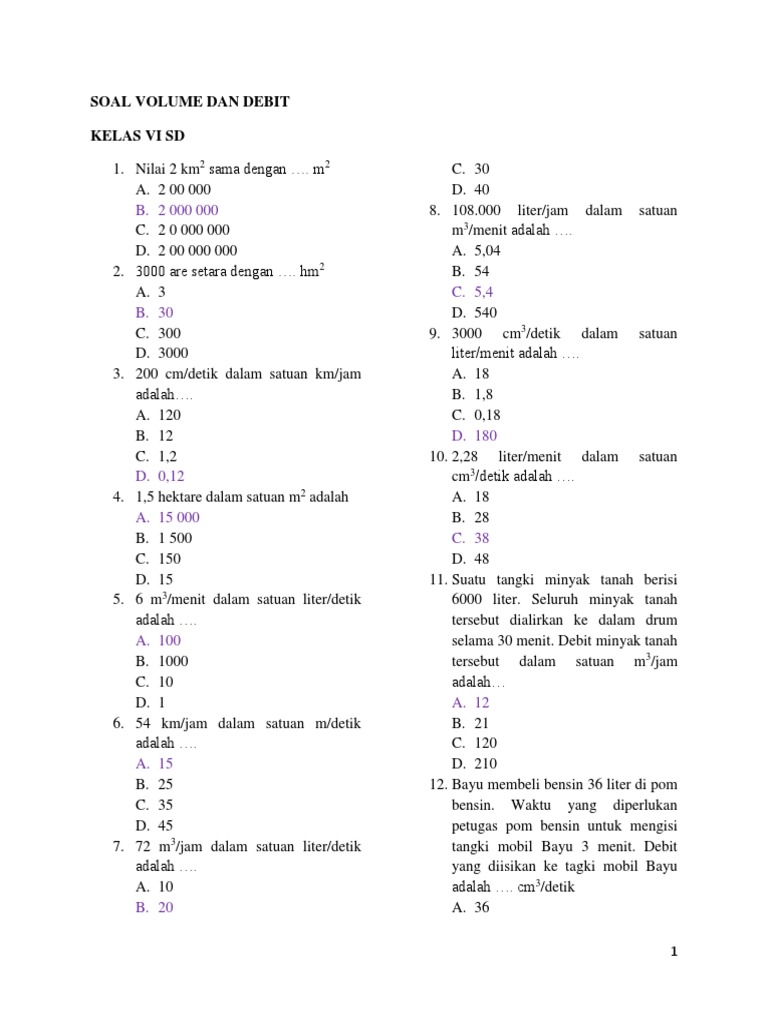 Soal Volume Dan Debit Kelas Vi Sd Soal